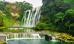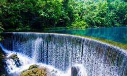 "最美原始森林风光"牟尼沟分两个景区:扎嘎瀑布和二道海,风景主要以原始森林、高山湖泊、温泉、巨型钙化瀑布、环形瀑布、钙化彩池为主要特色。在蓝天白云下,感受到瀑布飞散的水汽,是一场难忘的体验。